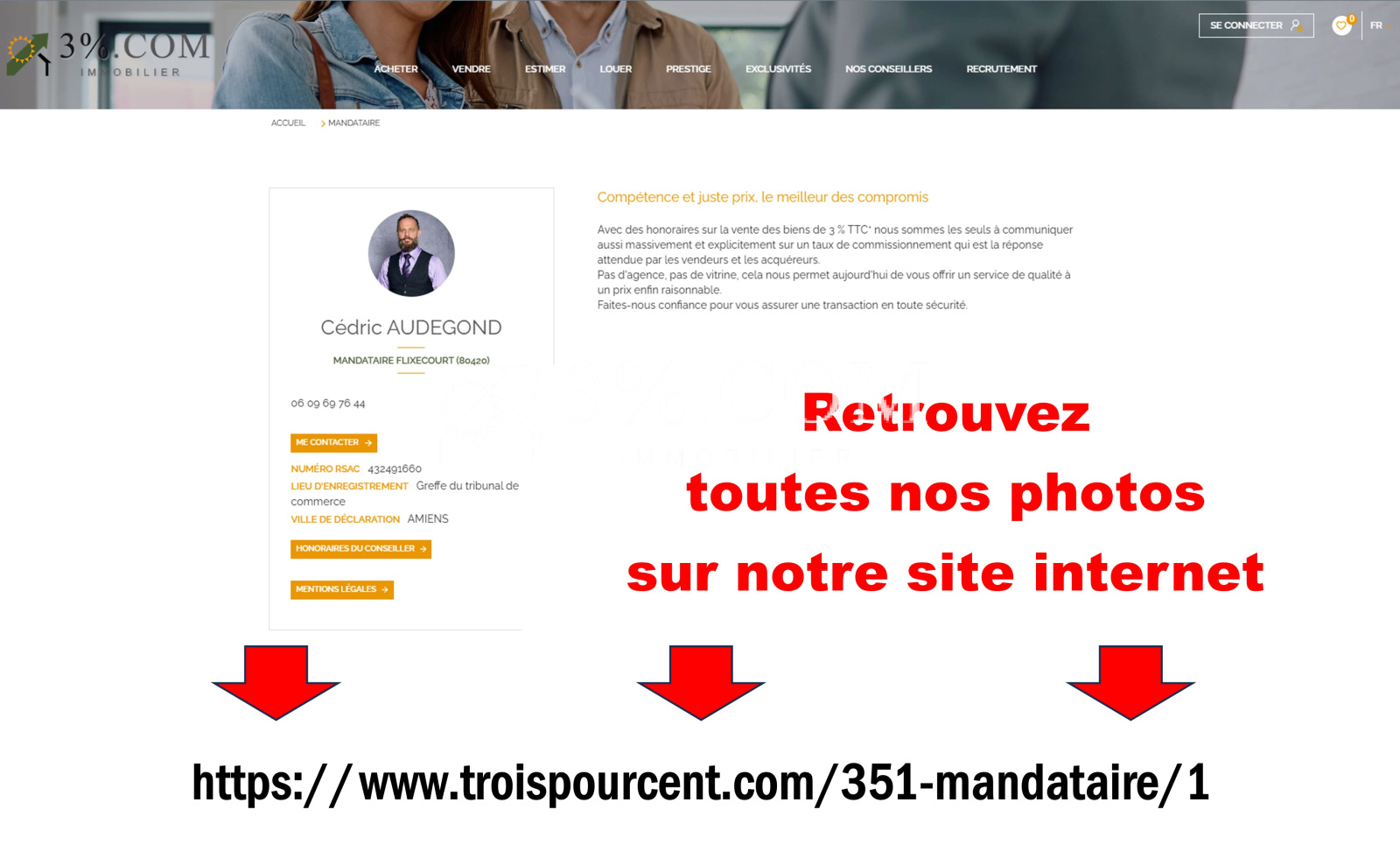 *** 3%.COM pour la Somme : Cédric AUDEGOND : 06 09 69 76 44. (Agent commercial en immobilier), RSAC Amiens 432 491 660. --- 3%.COM IMMOBILIER, réseau national à honoraires réduits.