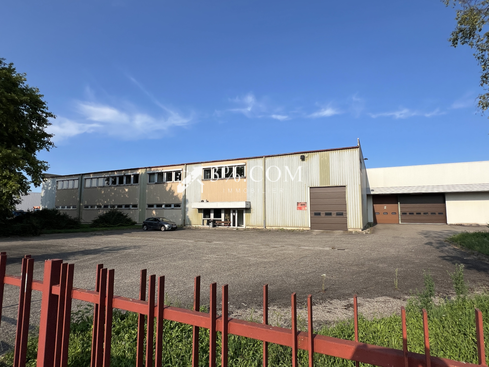 Le 2e bâtiment est équipé de 3 portes sectionnelles permettant l'entrée de poids lourds, d'une mezzanine avec un mur rideau et des Racks.