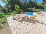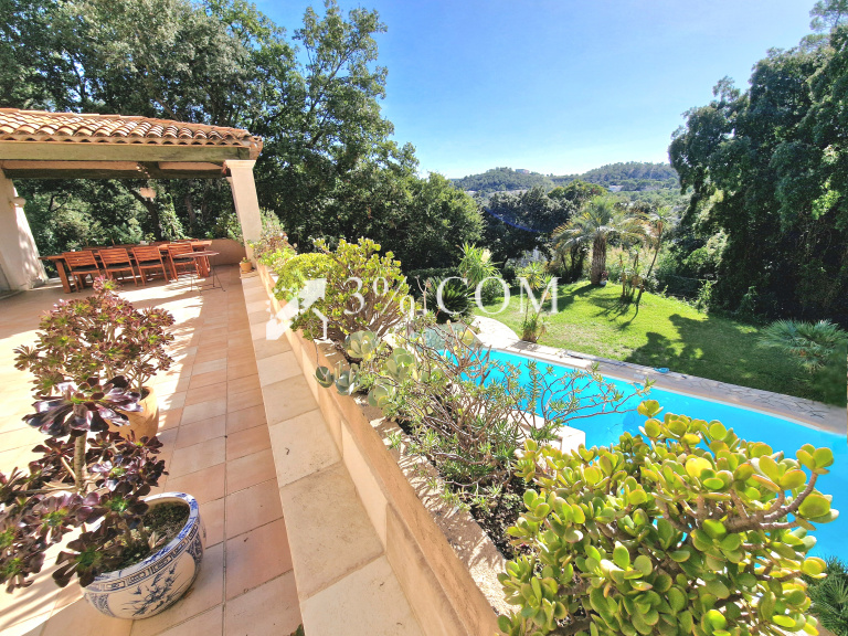 À l'extérieur, se trouve une terrasse avec vue sur la piscine. Un double garage et un pool house d'environ 50m² avec salle d'eau et un appartement indépendant.