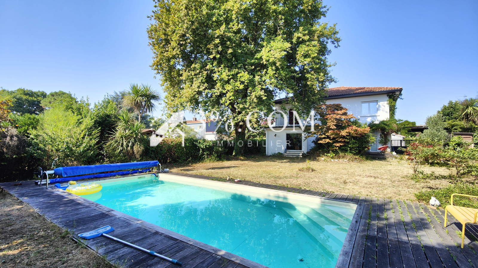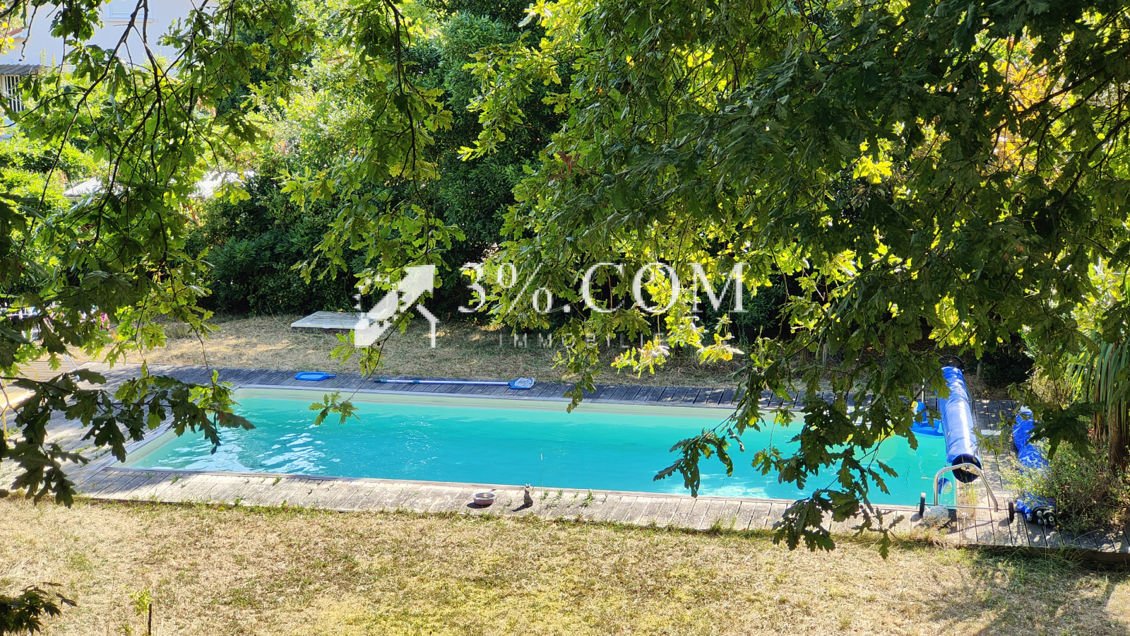 Terrain clos et arboré avec piscine