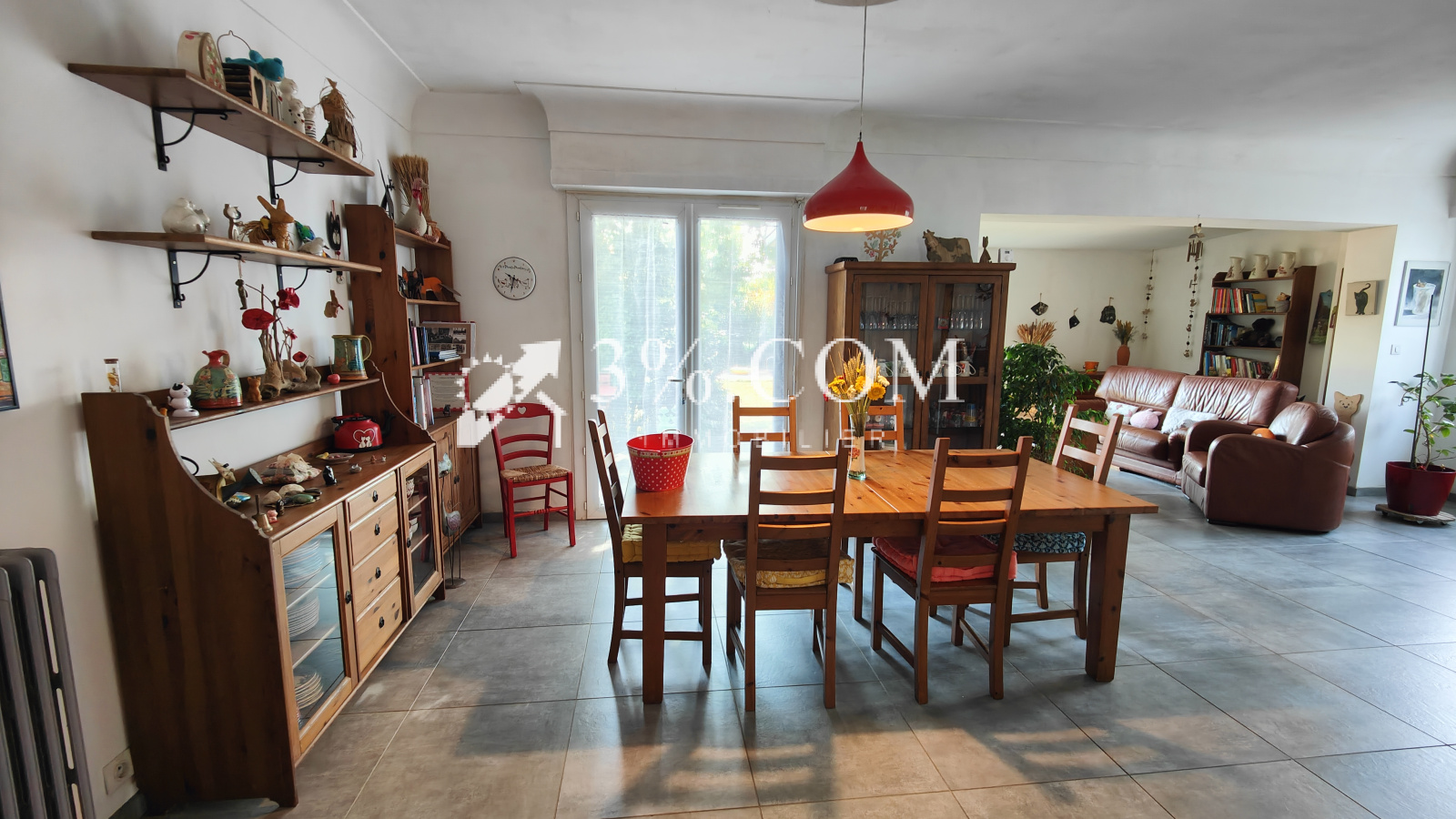 Un grand salon/séjour traversant avec poêle à granulés