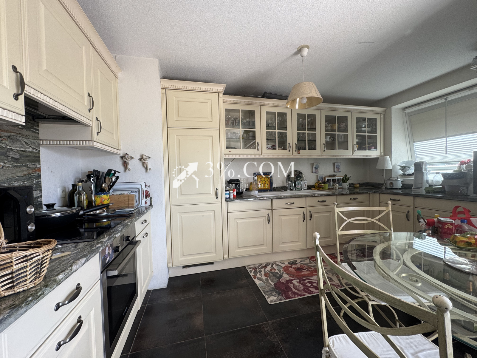 -- la cuisine est aménagée et équipée ( four- plaque- hotte- lave vaisselle - lave linge- réfrigérateur- congélateur)