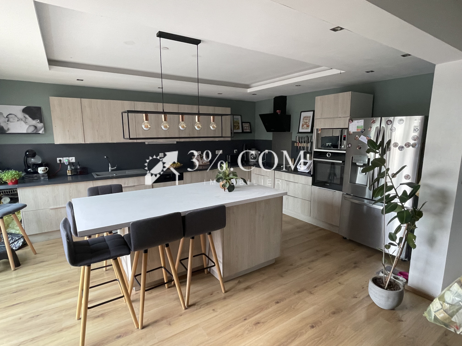 1 cuisine ouverte de 20 m² avec ilot central donnant sur une terrasse de 80 m²,