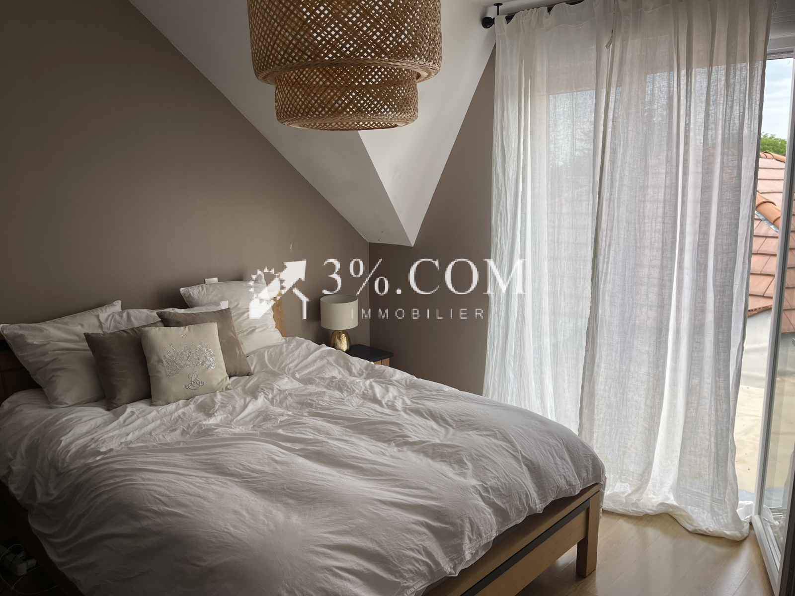 1chambre de 15 m² donnant sur une terrasse,