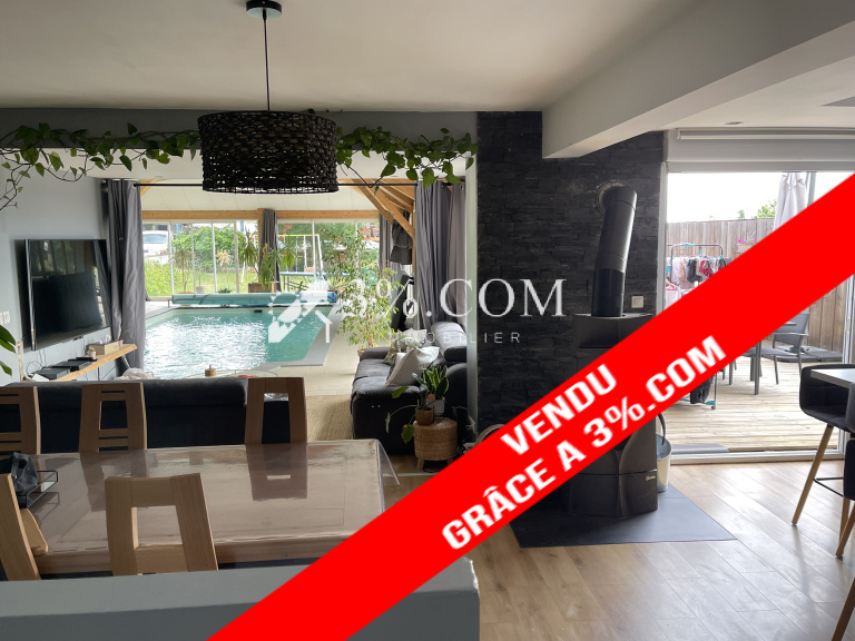 De très belles prestations pour cette maison de 2007 comme ses panneaux solaires, sa pompe a chaleur air air, sa piscine d'une profondeur de 1.5 m partout et son DPE en B !