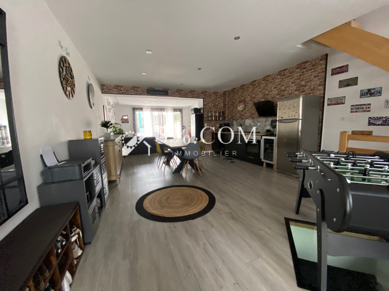 Spacieuse pièce de vie lumineuse avec cuisine ouverte, idéale pour partager des moments conviviaux Accès direct à une agréable terrasse et au jardin