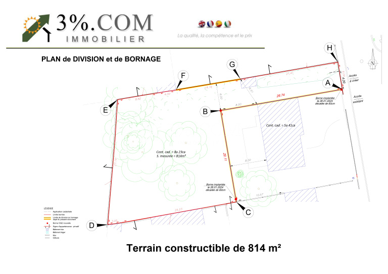 TERRAIN au Prix de 158 000 € HAI ( Honoraire Forfaitaire Agence Inclus de 6 000 € )