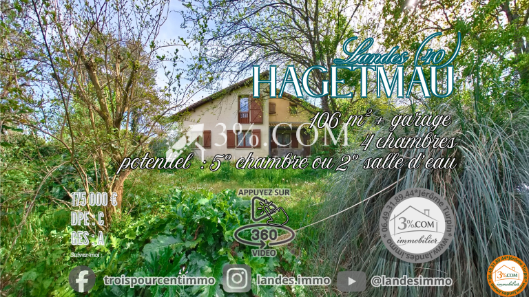 Maison 4 chambres + potentiel 5e – 106 m² – Hagetmau