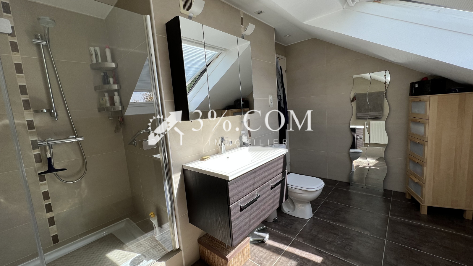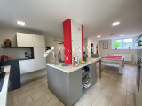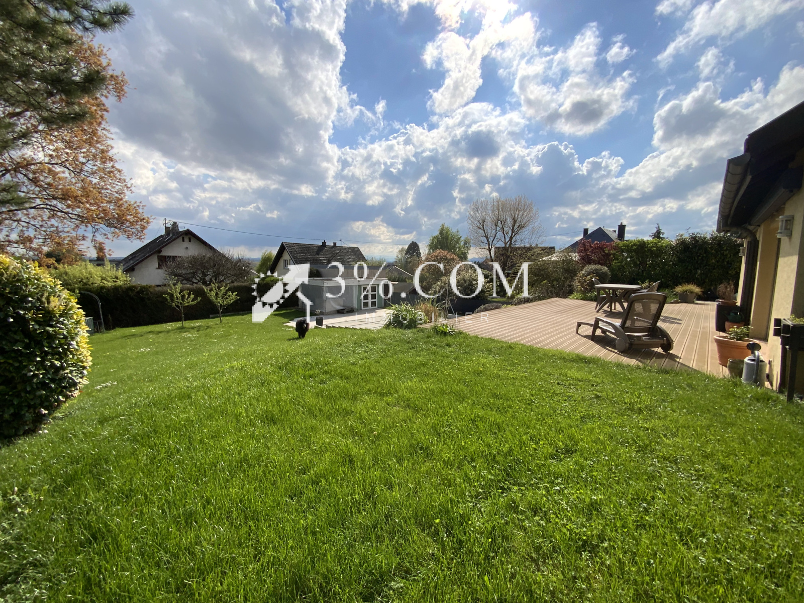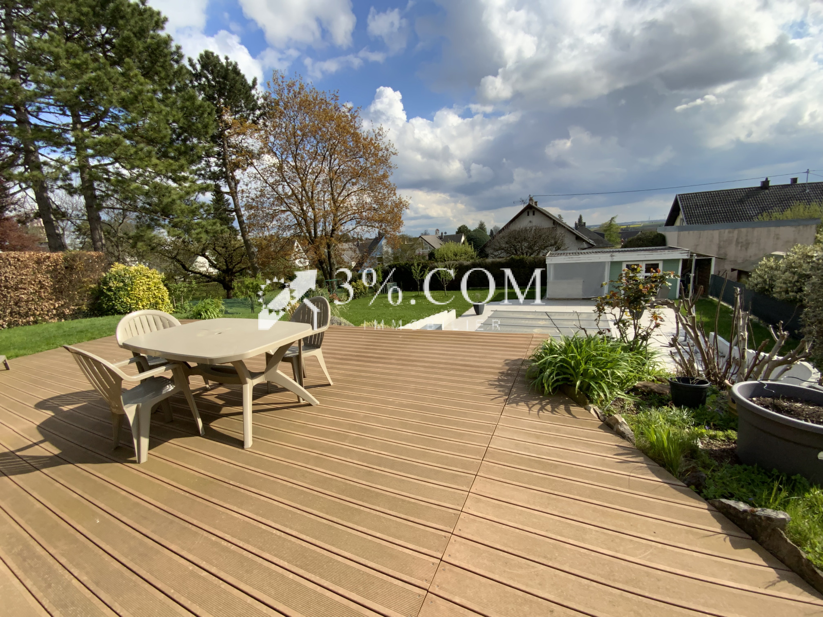 3%.COM - DEJA VENDU - EXCLUSIVITE- L'agence 3%.COM a le plaisir de vous présenter cette belle maison d'architecte sur 9 ares située dans le village prisé de TRUCHTERSHEIM. -- RARE à la vente : Cette demeure vous charmera par ses volumes, son agencement et son jardin aménagé avec piscine. --Située au calme dans un quartier très résidentiel -- D'une superficie de 157m2, elle dispose de 3 chambres, 1 bureau, 2 salles de bain/d'eau, --Son salon en toit cathédrale avec sa cheminée ne pourra que vous séduire -- Un espace détente avec terrasse et piscine, un garage double motorisé complètent ce bien. -- Lumineuse, fonctionnelle, idéale pour famille --- Vous recherchez une maison de qualité dans un village dynamique alors n'hésitez pas et venez visiter ce bien. --- Au rez de chaussée: -- une entrée -- une suite parentale avec sa salle de bain (19m²) -- un toilette séparé --- Au niveau terrasse: -- salon ( 40m2) -- cuisine (28m2) --toilette --bureau (13m2) --cave, chaufferie, buanderie -- Au 1er: - espace bureau (18m2) - 2 chambres --1 salle de bain avec toilette --- A l'extérieur : - Garage double (36m2) porte motorisée - piscine chauffée par PAC - dépendance avec cuisine d'été Informations diverses : --Chauffage par PAC (2019) - ballon thermodynamique --Retrouvez plus de photo sur notre site troispourcent -- Contactez Sandrine ROTH 06 58 67 64 84 - Agence Immobilière ROTH IMMOBILIER Sarl, 3%.COM, RCS 803 863 638. -- Agence et vitrines à Hochfelden, siège à Gimbrett-Kochersberg. -- Réseau national à honoraires réduits: 3% TTC