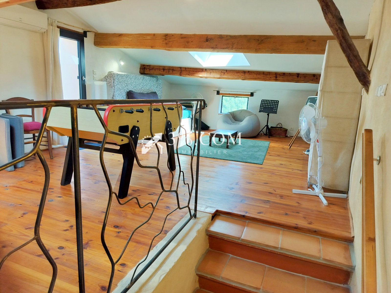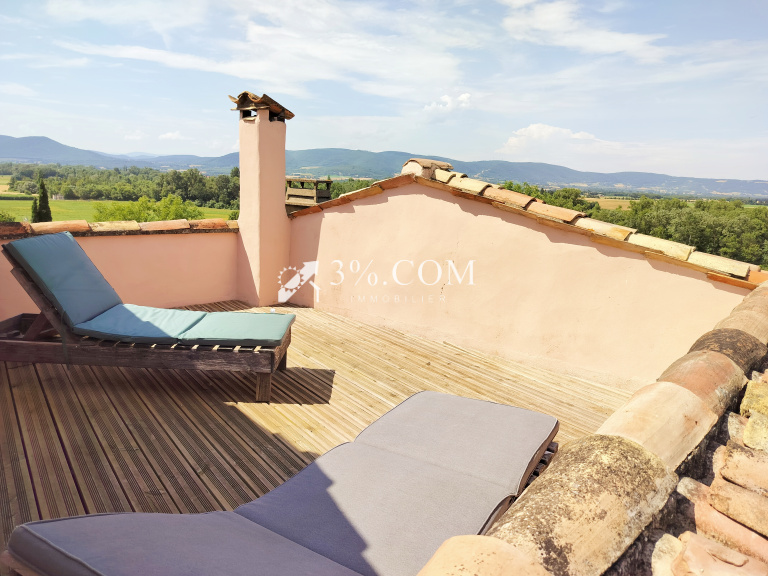 ---Au dernier niveau : L’escalier en pierre conduit à un généreux espace sous combles de plus de 40m2 éclairé par ses velux et son accès à la spectaculaire terrasse de toit, sans aucun vis à vis, à la vue exceptionnelles sur les massifs alentours.