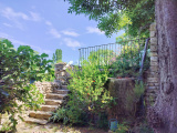 ---Au Rdc : La maison est solidement construite sur de belles caves et une cour intérieure sans vis à vis. Les escaliers en pierre serpentent sur deux paliers proposant de petites terrasses intimes et arborées.
