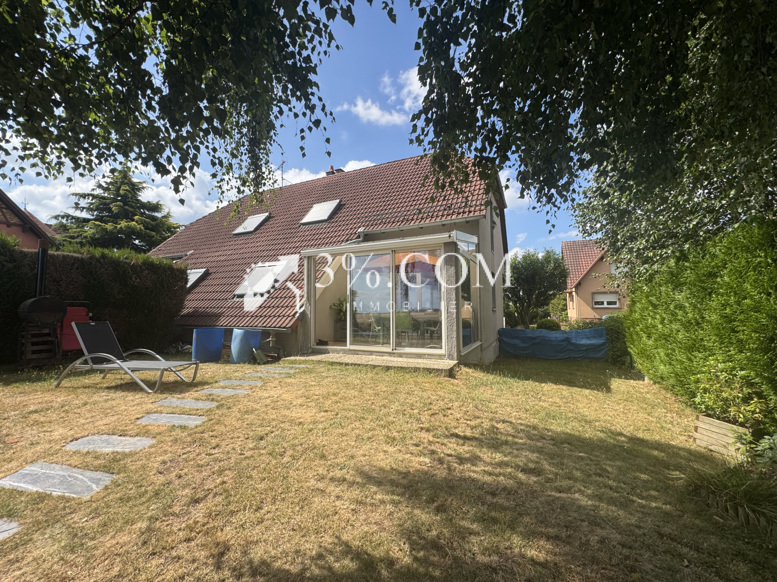 Exclusivité- Coup de coeur à HOCHSTETT, jolie maison mitoyenne de 98m2 carrez / 114m² au sol avec véranda et jardin sur une parcelle de 2,87 ares . --- Sa situation au bord de champs est idéale ...au calme et sans vis à vis ! --- Vous recherchez une véritable qualité de vie à la campagne, un bien fonctionnel et en bon état ? alors venez visiter cette maison ---Lumineuse et fonctionnelle, habitable de suite. --- Au rez-de-chaussée : -- une entrée avec placard -- Un salon /salle à manger ( 34m2) -- Une cuisine aménagée et équipée (10,67m2) --Une véranda ( 9,75m2) vue champs --un toilette --- Au 1er étage -- 3 chambres -- une salle bain avec toilette ---Sous -sol: -- 1 pièce aménagée ( 13,27m2) -- garage double en enfilade (25m2) avec porte motorisée -- espace rangement /buanderie/atelier . --- Autres informations : -- chauffage electrique -- cheminée avec insert --place de parking extérieur les +++: sa situation en bordure de champs, sous- sol complet Contactez Sandrine ROTH au 03 88 89 80 86 ou 06 58 67 64 84. Du lundi au samedi de 9h00 à 19h00. -- Agence Immobilière ROTH IMMOBILIER Sarl, franchisé 3%.COM, RCS 803 863 638. -- Agence et vitrines à Hochfelden, siège à Gimbrett-Kochersberg. -- Réseau national à honoraires réduits: 3% TTC