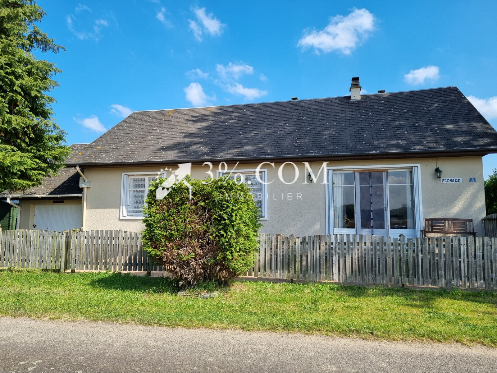 3%.COM. Dans la commune de Guémené Penfao, maison de plain pied de 80m2 composée de 3 chambres et d'un garage sur un terrain de 1300m2