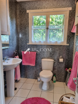 --- Dans la maison : un couloir d'entrée deservant 1 cuisine, un salon avec poêle donnant sur une terrasse, une salle à manger, un WC, une salle de douche avec WC et 3 chambres.
