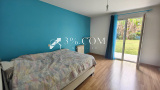 Trois chambres supplémentaires avec placards donnant directement sur le jardin, une salle d’eau, un WC indépendant, une buanderie et un garage.