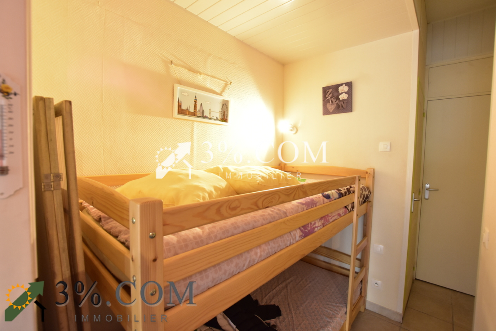 - d’une partie nuit avec un lit 2 personnes, placard intégré et un lit superposé,