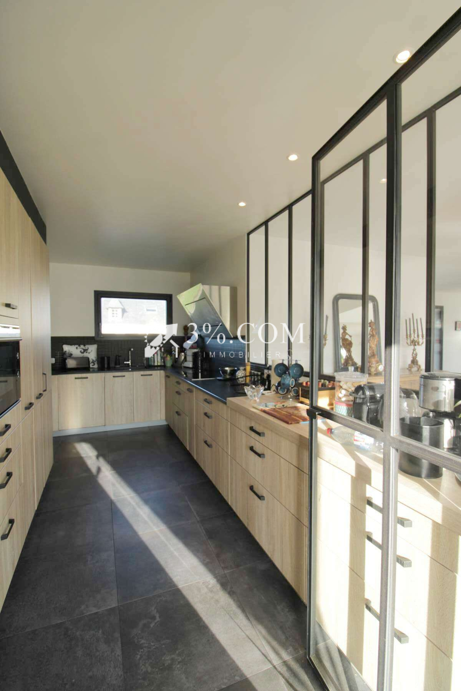 - Cuisine aménagée et équipée : Une cuisine moderne et fonctionnelle, agrémentée d’une verrière qui apporte une touche d’élégance et de luminosité.