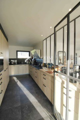 - Un bureau : Un espace au calme séparé par une verrière dédié au télétravail ou à la créativité, permet à chacun de profiter et d'évoluer en harmonie, dans chaque espaces de la maison selon ses besoins.