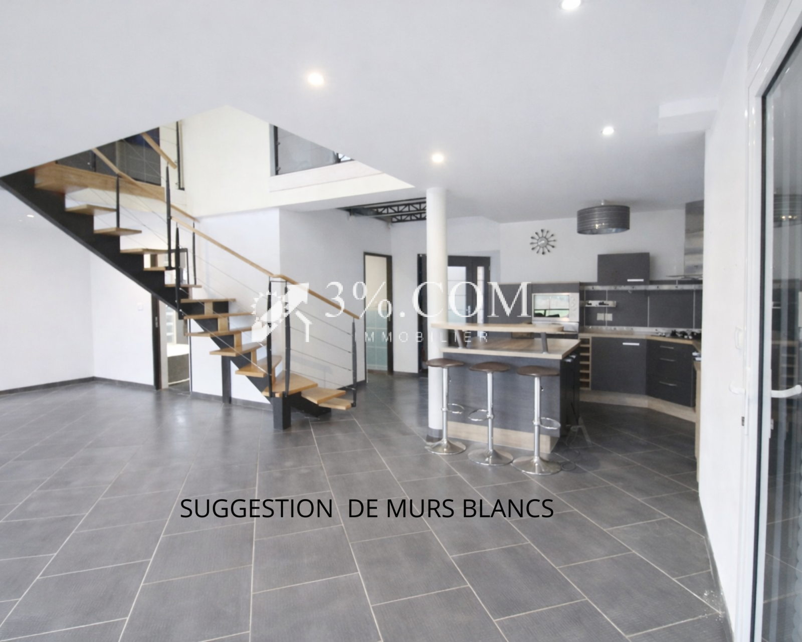 - Un grand séjour lumineux avec cuisine ouverte, aménagée et équipée