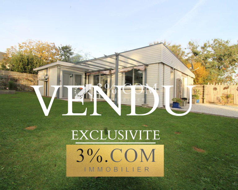 3%.COM Immobilier, Jean-Pierre JOSSE vous propose au cœur d'ETEL, en impasse, cette ossature bois avec dépendance, piscine chauffée, pool house, bungalow et terrasse bois SUD/OUEST
