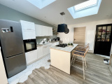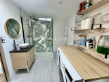 Vous trouverez au rez de chaussée un vaste salon séjour très lumineux, sa cuisine aménagée et équipée récente ainsi qu'une salle d'eau spacieuse.