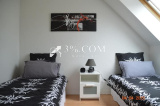 L'étage dessert trois chambres et une salle de bain avec baignoire et douche italienne .