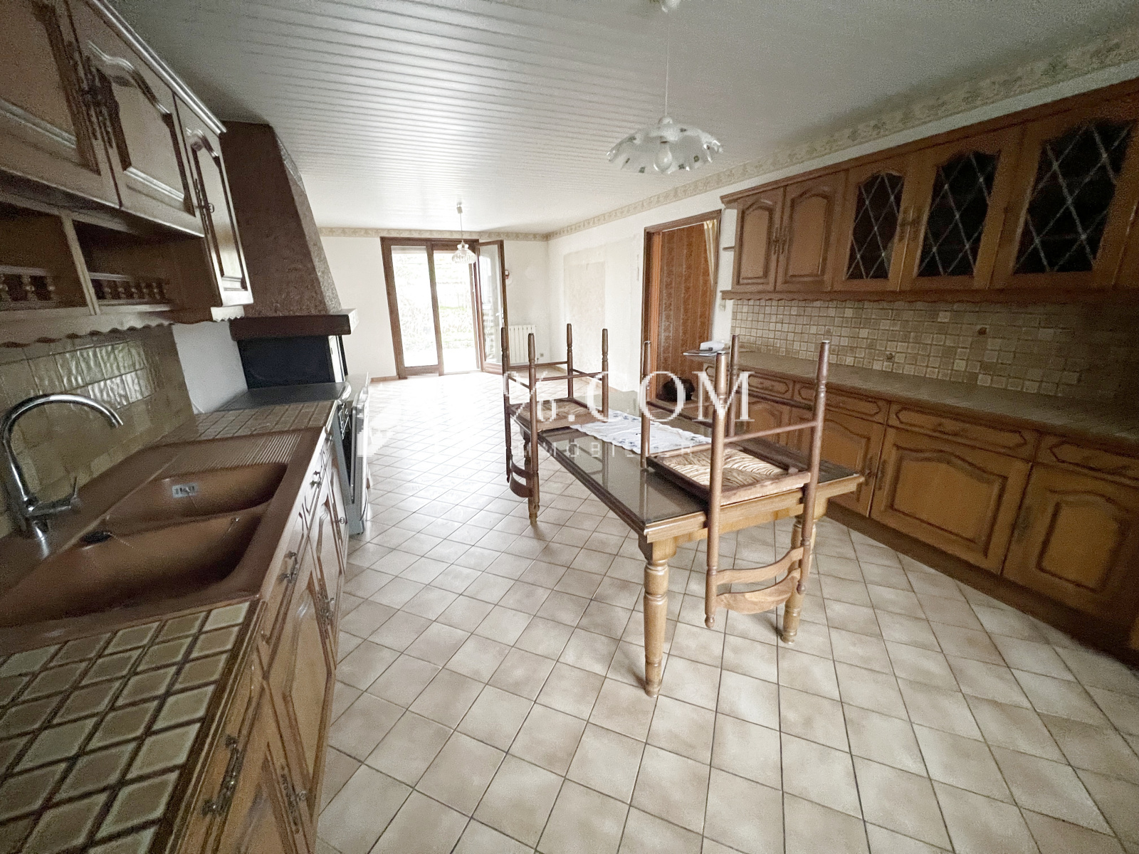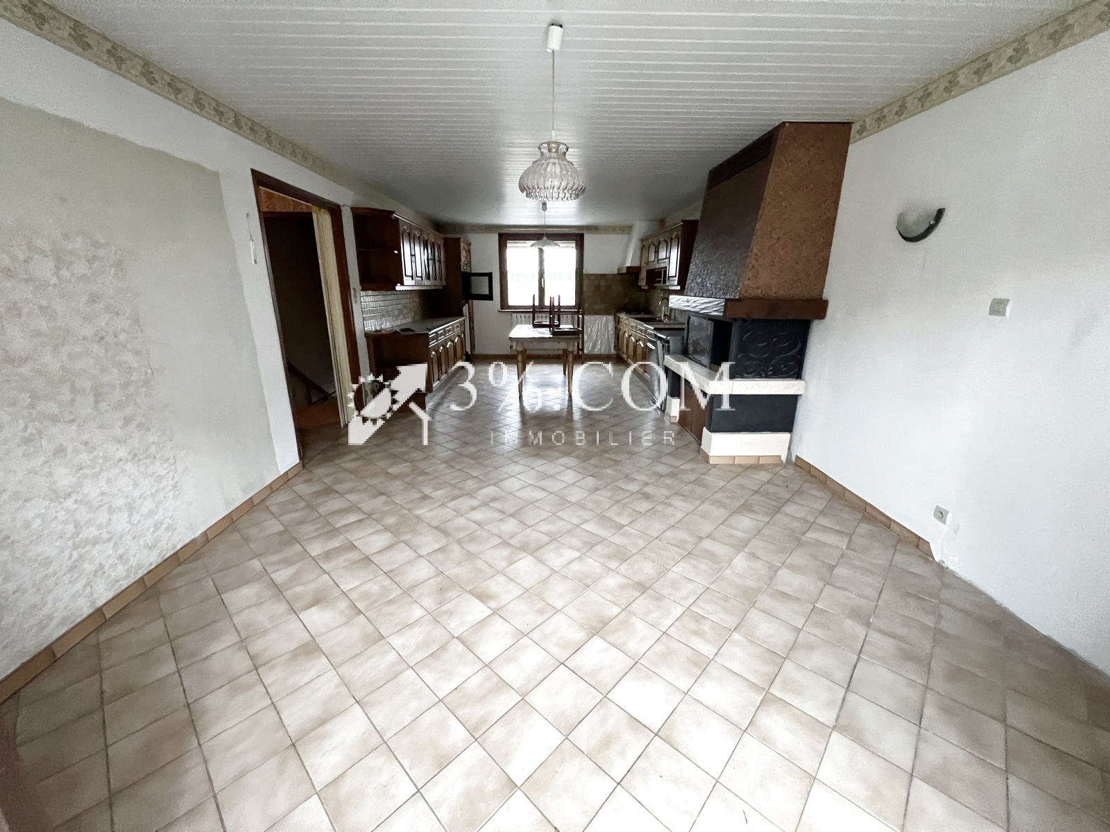 - Belle pièce de vie (salon/salle à manger/cuisine) de 31 m², avec cheminée à foyer fermé, donnant sur une terrasse et le jardin