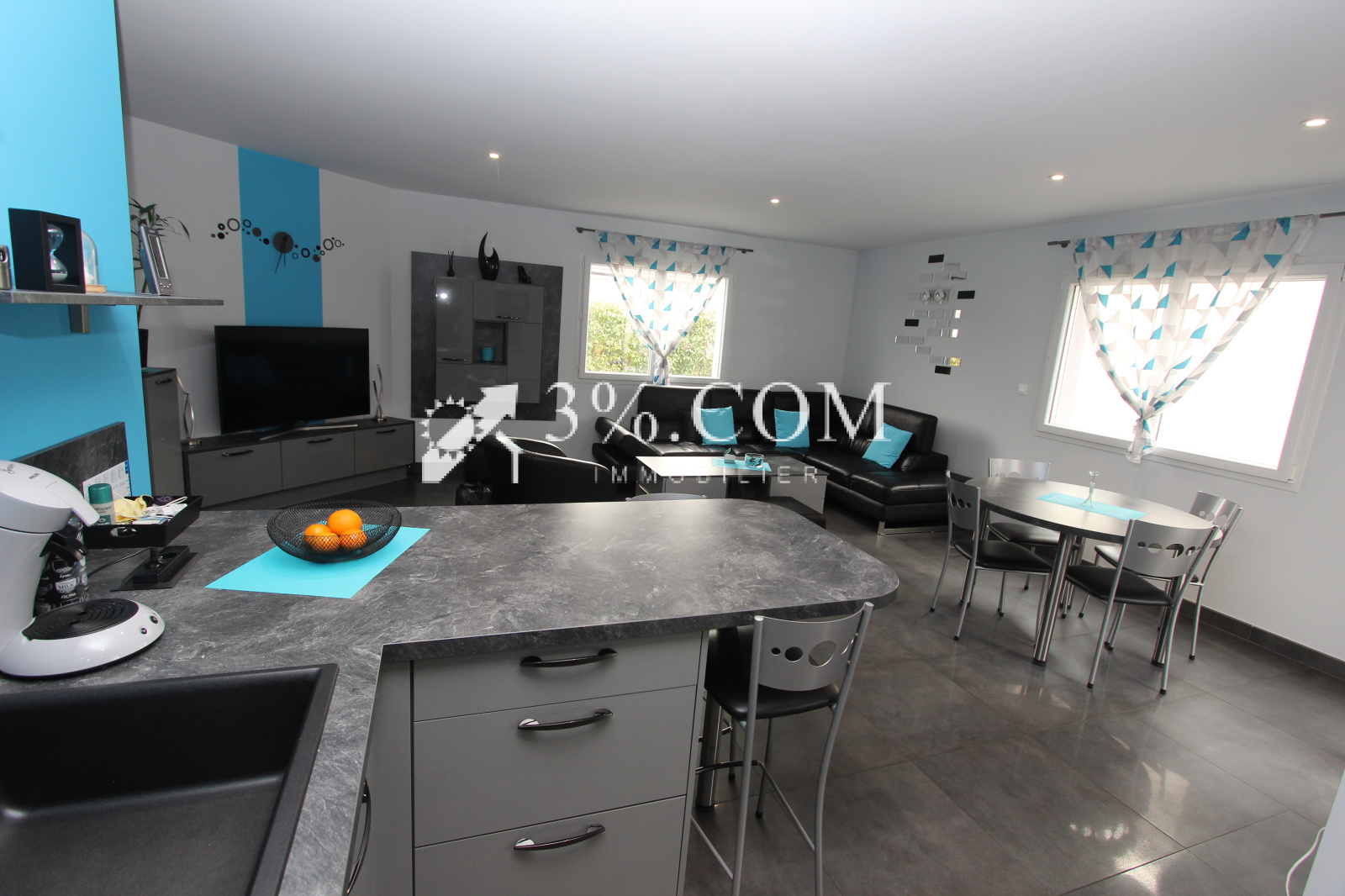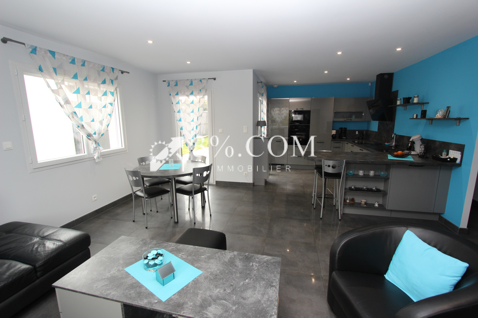 La maison se compose d’une spacieuse et lumineuse pièce de vie, avec salon-séjour ouvert sur la cuisine, créant un bel espace convivial.
