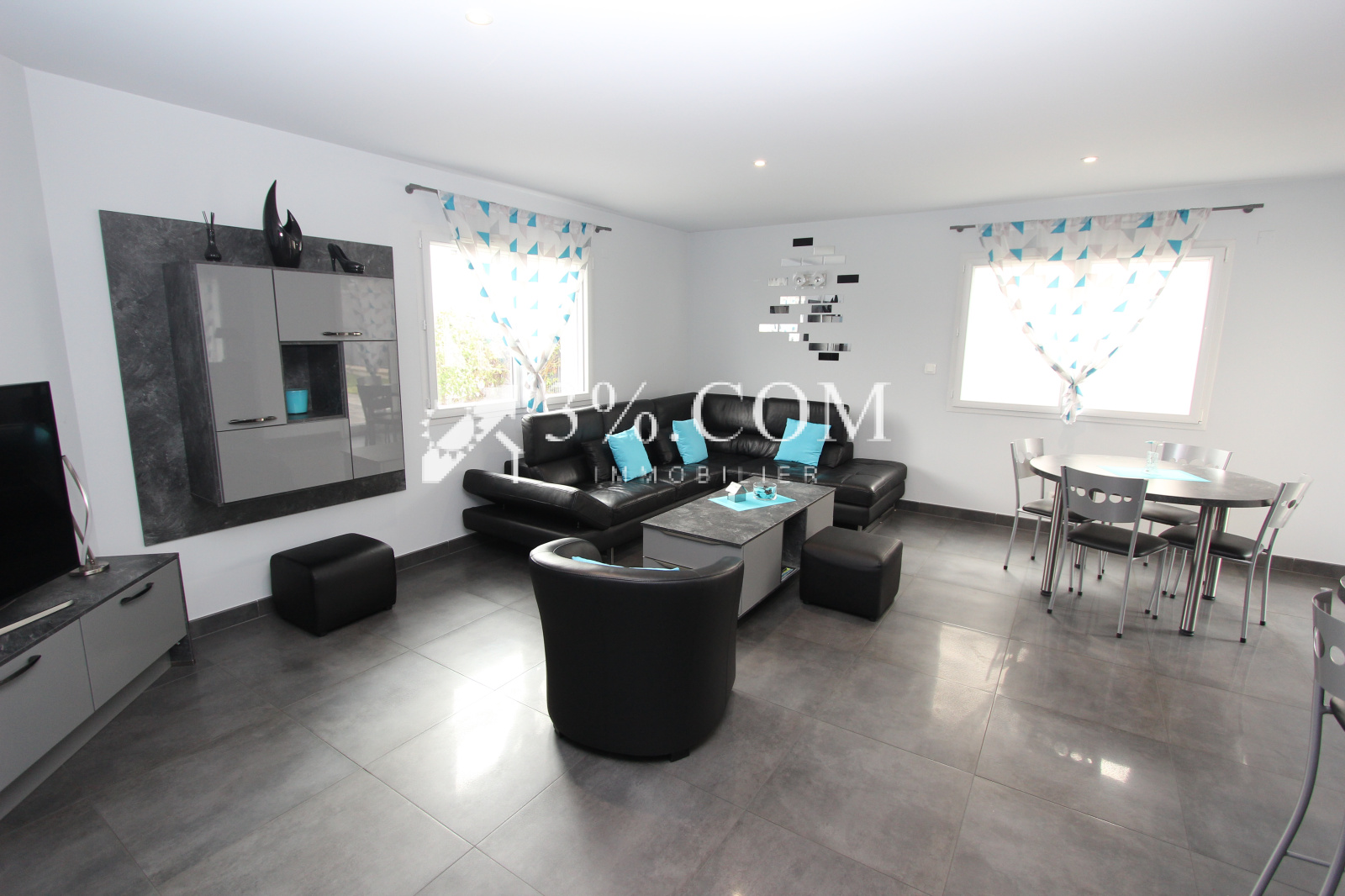Côté confort et équipements, la maison dispose : d’un chauffage au sol alimenté par une pompe à chaleur air/eau, de la fibre optique, de moustiquaires, d’un store banne pour profiter de la terrasse, et d’un adoucisseur d’eau.