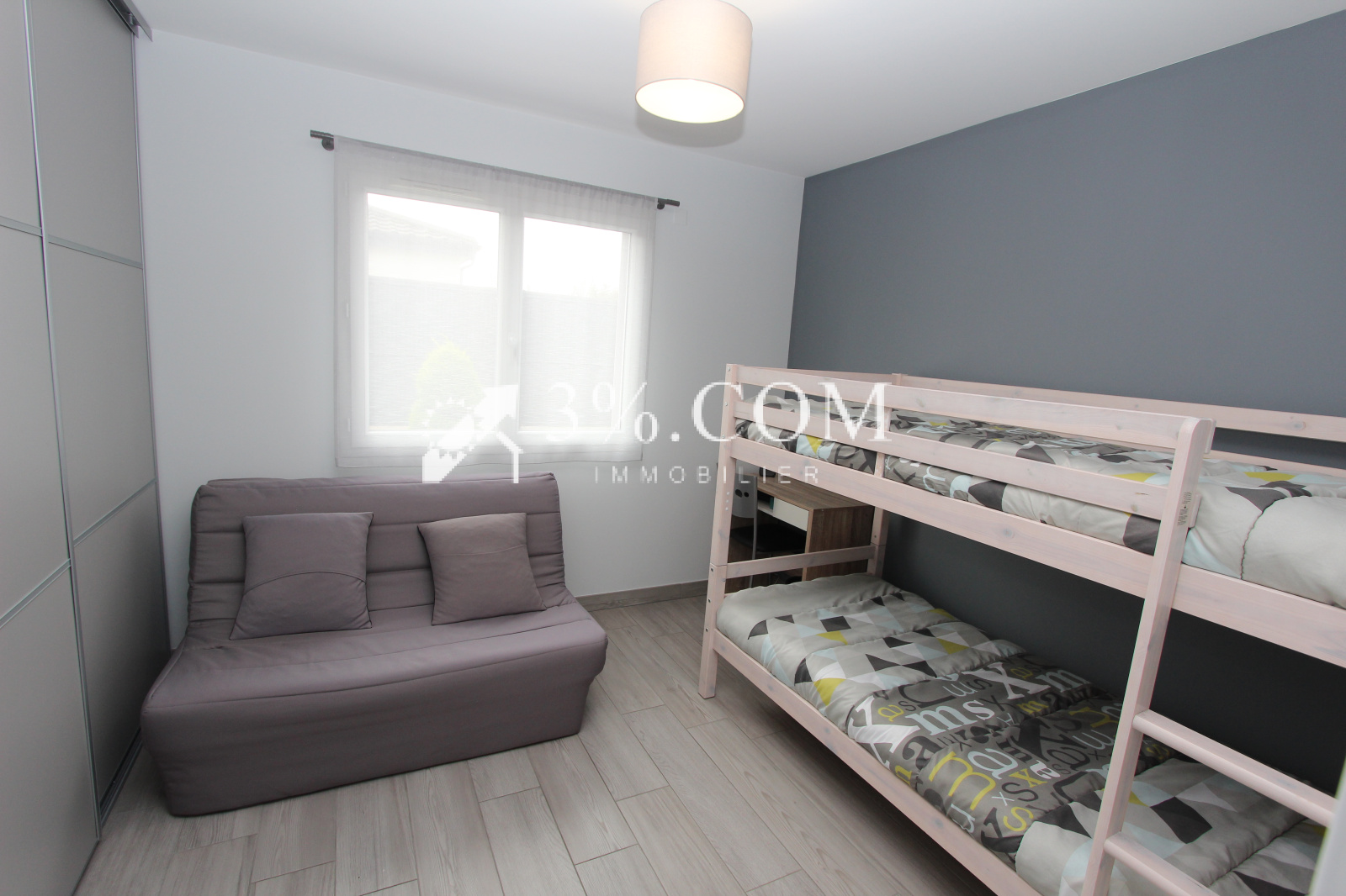 L’espace nuit comprend trois chambres, une salle d’eau, ainsi qu’une buanderie fonctionnelle.