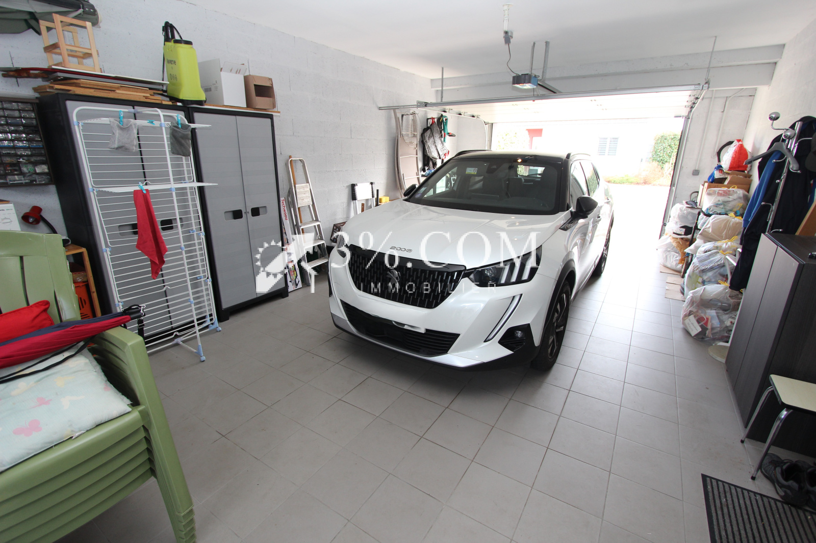 Un grand garage complète le bien, équipé d’une porte sectionnelle motorisée, apportant confort et praticité au quotidien.