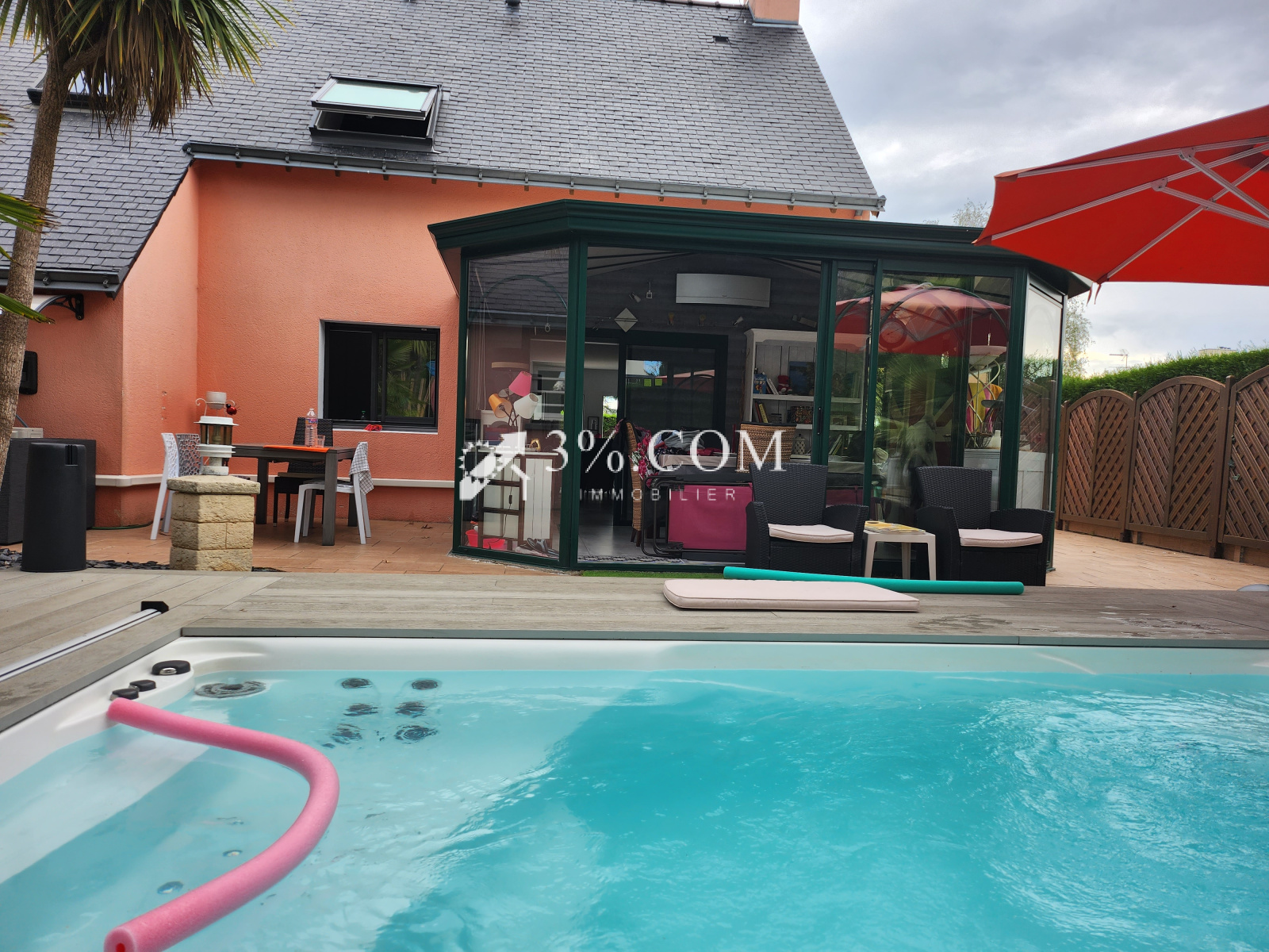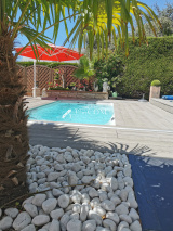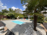Sur un terrain de 715 m² arboré et paysagé avec piscine posée en 2019 (jacuzzi, nage à contre courant, balnéo, terrasse recouvrante et coulissante en résine de synthèse),