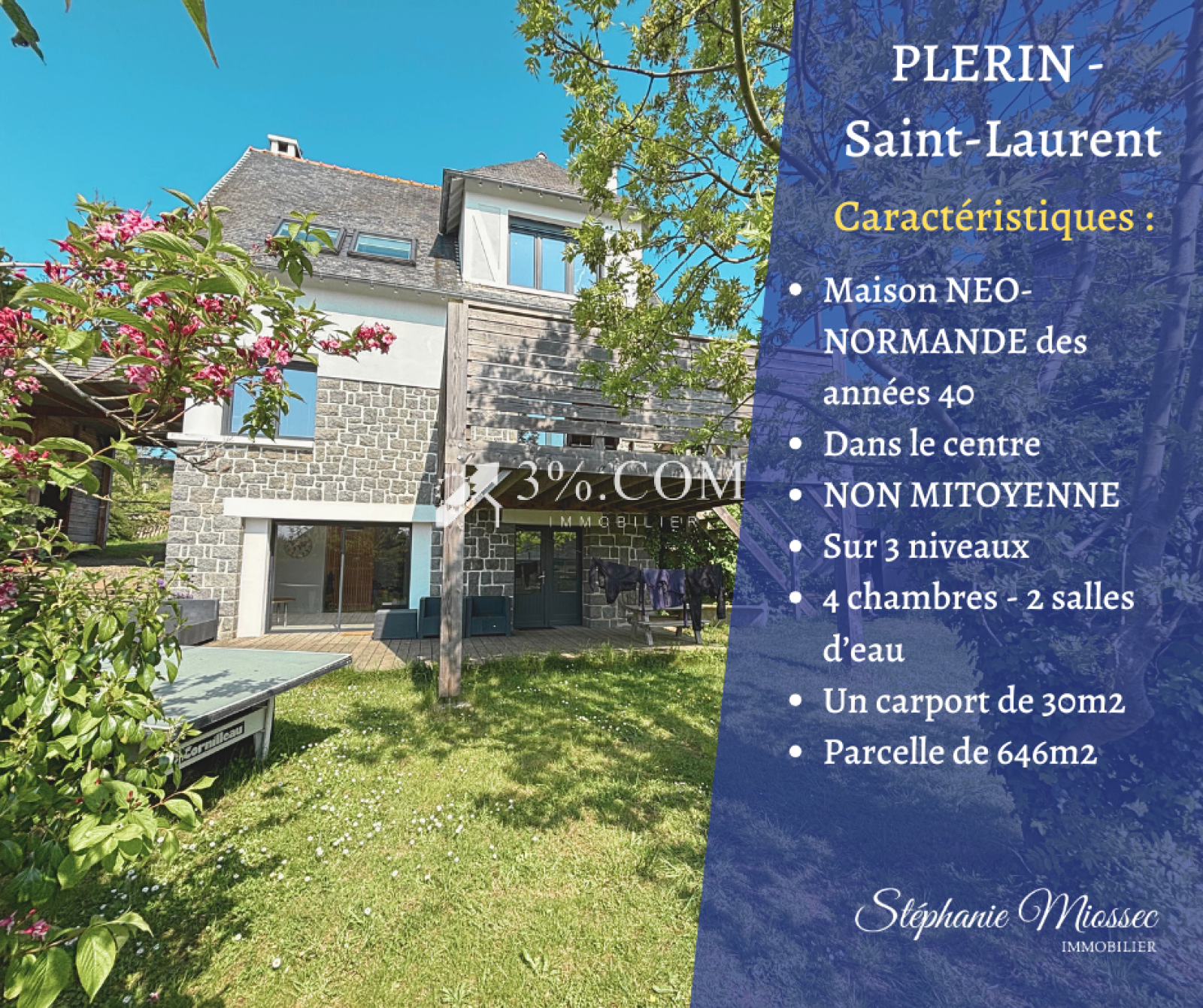 Honoraires 3% TTC de la valeur du bien - Les honoraires sont à la charge de l'acquéreur. Pour découvrir cette maison, contactez votre conseillère, Stéphanie MIOSSEC EI au 07 81 57 59 65 - RSAC de St Brieuc n° 877 562 496 - 3%.COM immobilier : réseau national à honoraires réduits à 3% TTC -