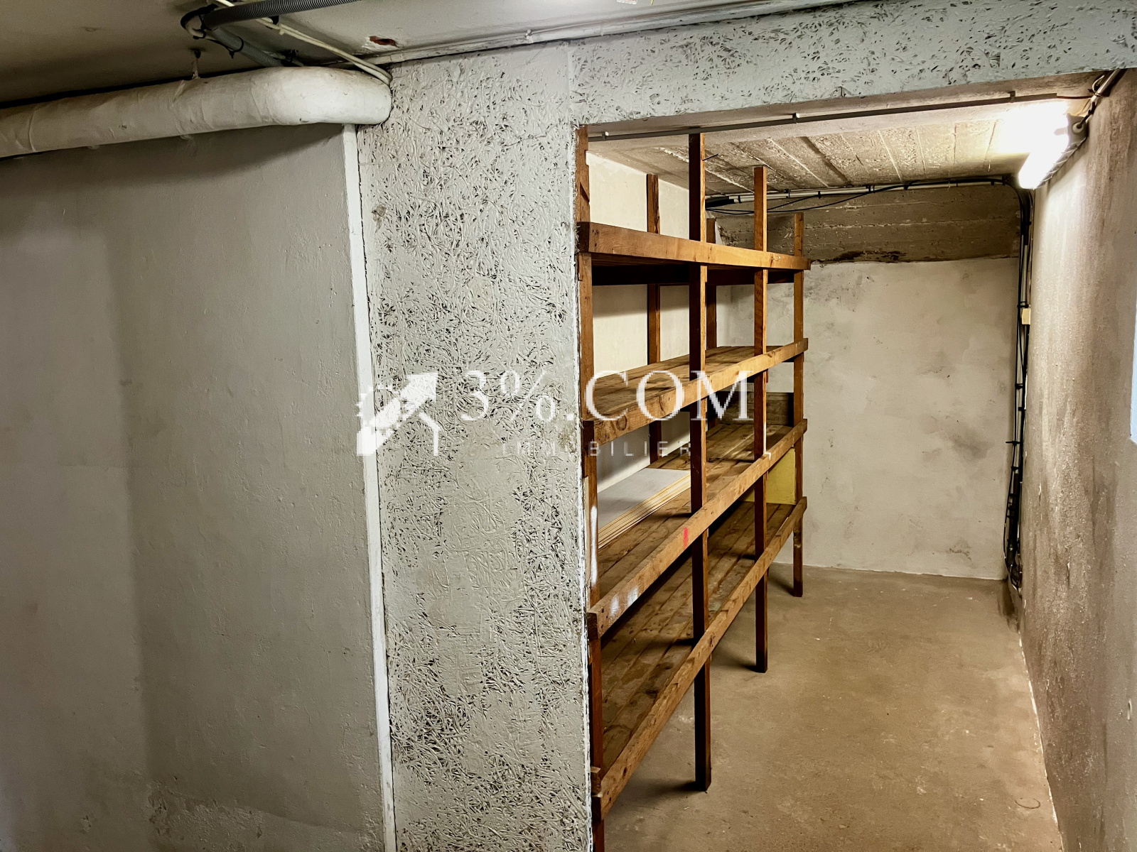 - Cave et dégagement avec clayettes en bois,