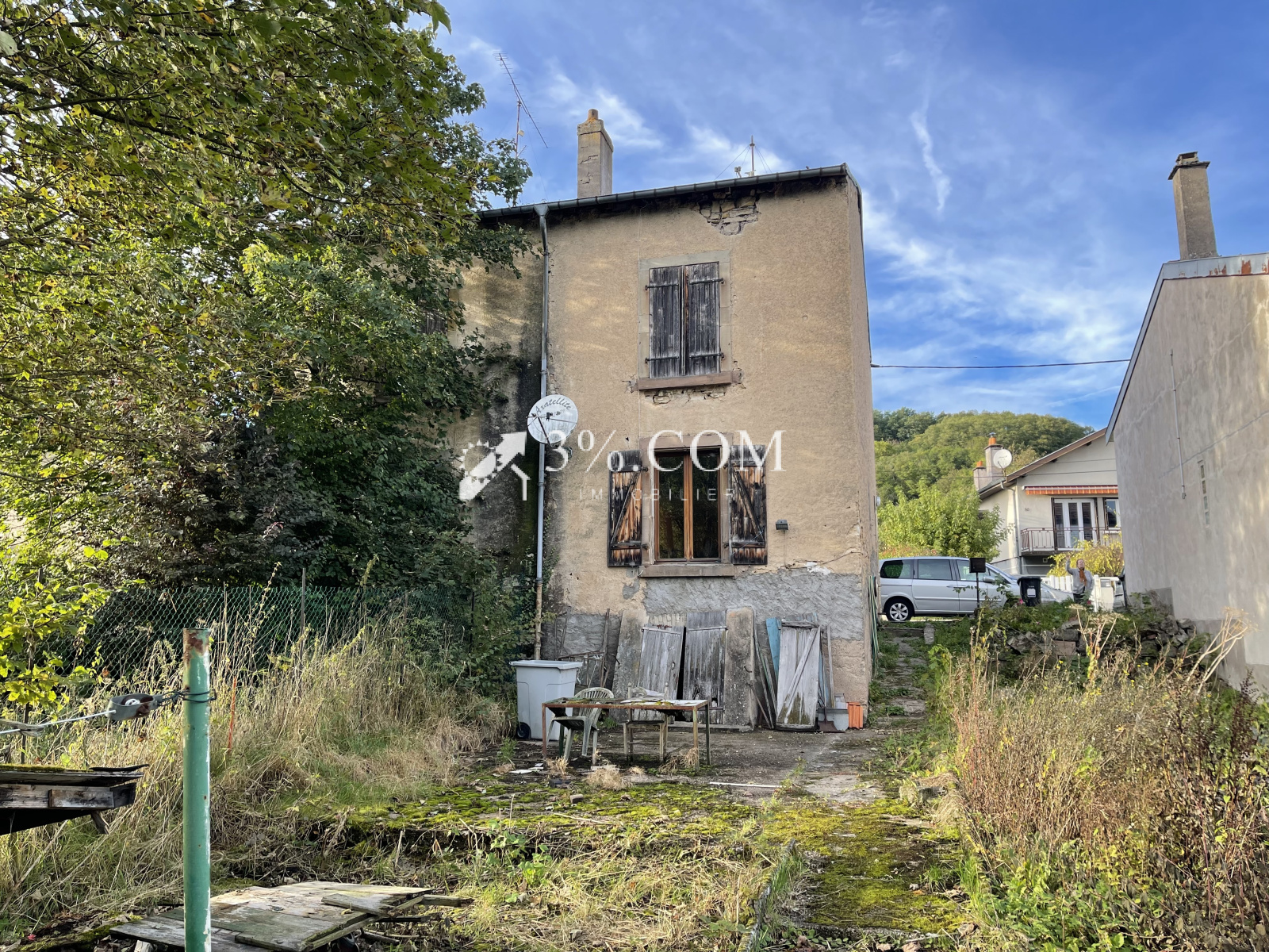 3%.COM, En exclusivité, cette maison mitoyenne d'un coté de 80 m² sur un terrain de 400 m² se situe à 4 km de Dombasle , 20 km de Nancy et 10 km de Luneville. Au bord du canal, entièrement à rénover.