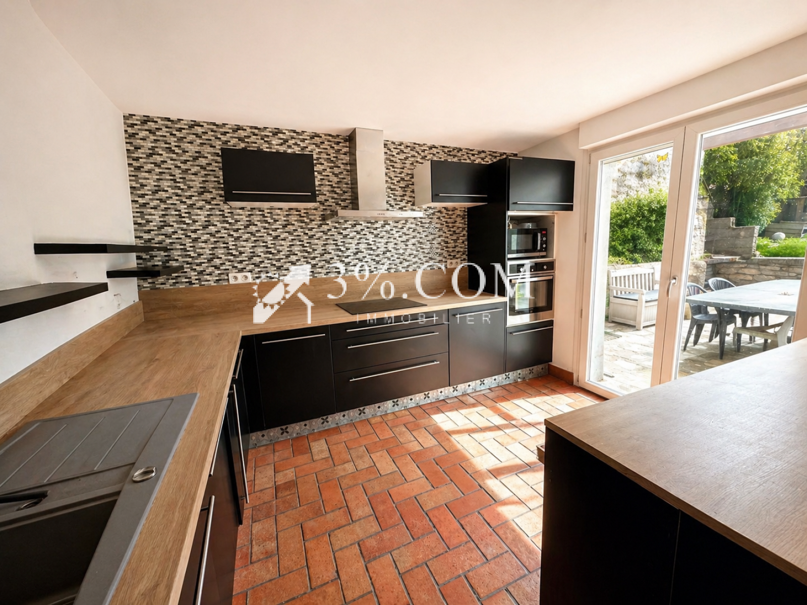 panneaux solaires photovoltaïques, isolation extérieure, pompe à chaleur, double vitrage, garage, grande cave, jardin clos et terrasse.