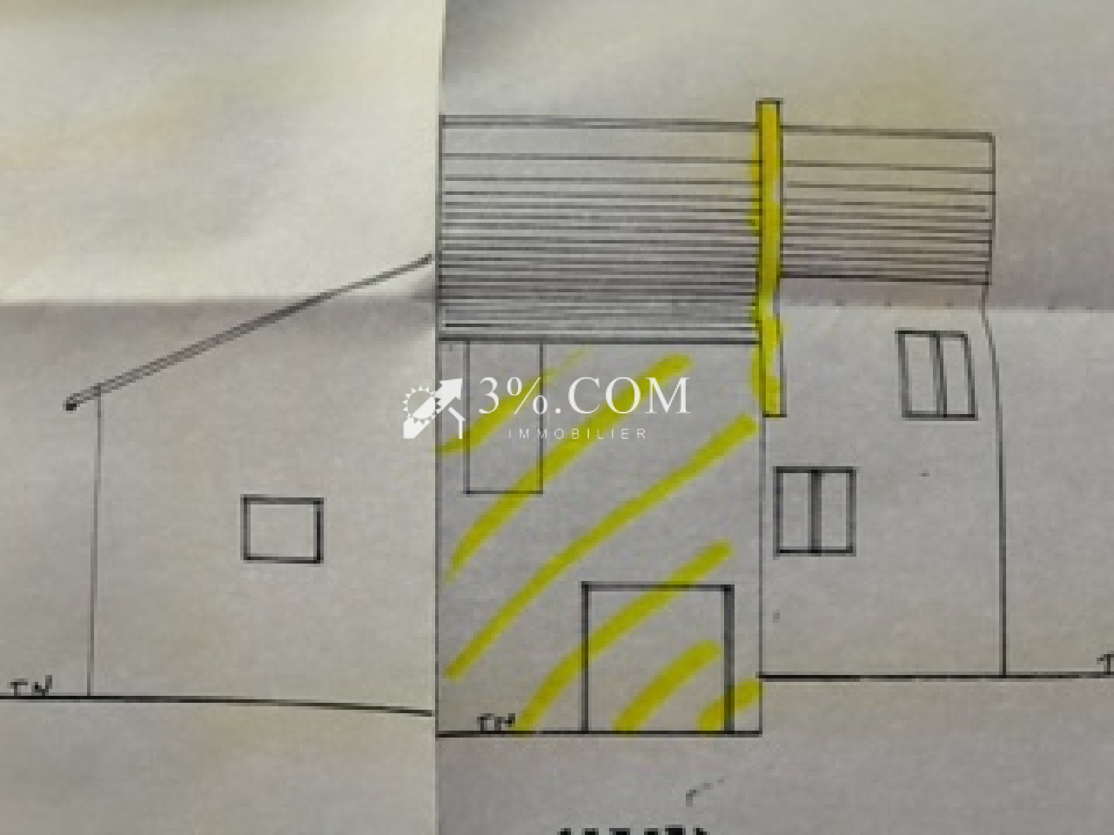 Sur 2 etages + un grenier. 2/3 de la toiture a été refaite.
