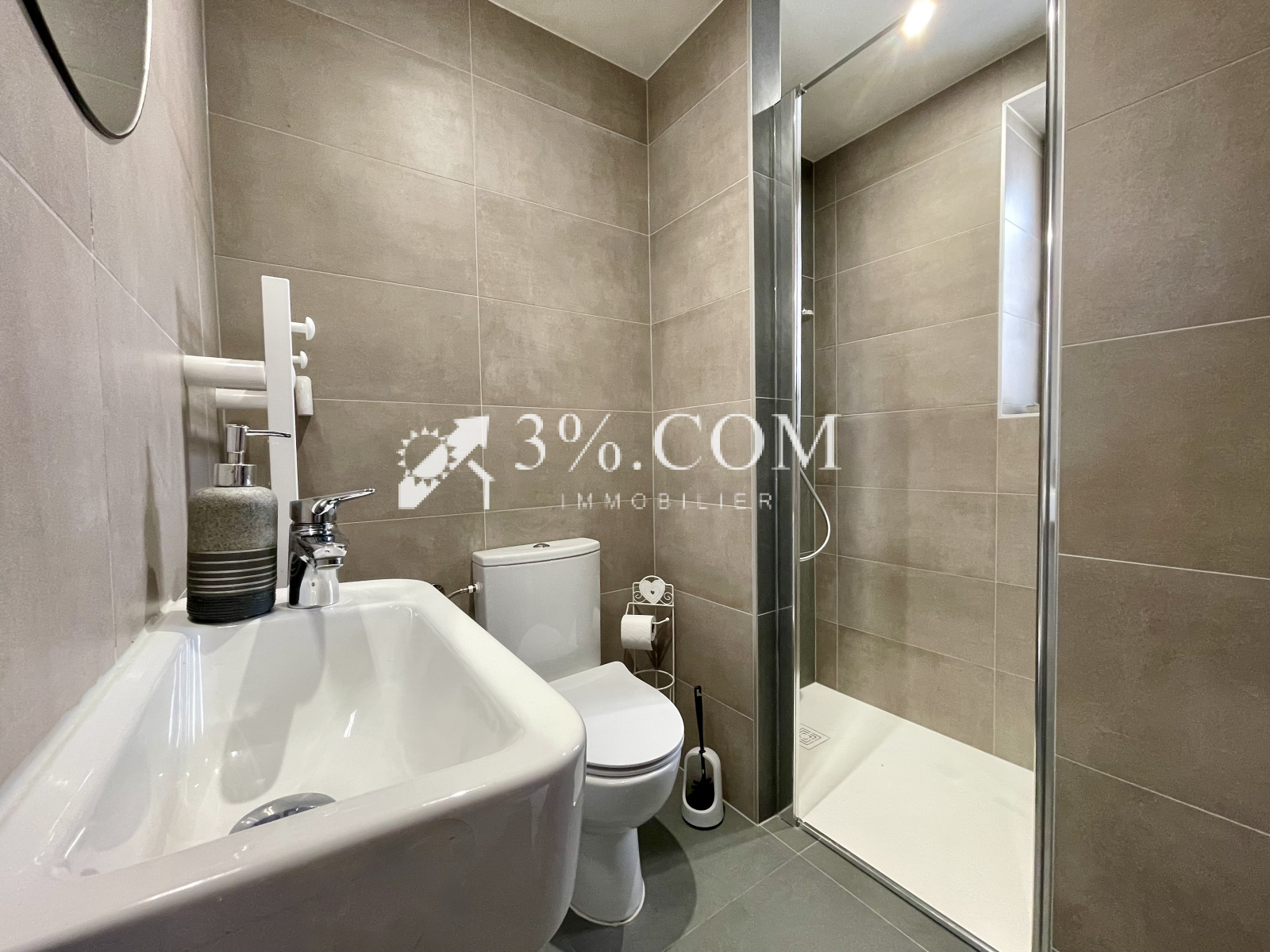 -- Une salle d’eau/wc (douche, wc, lave-mains)