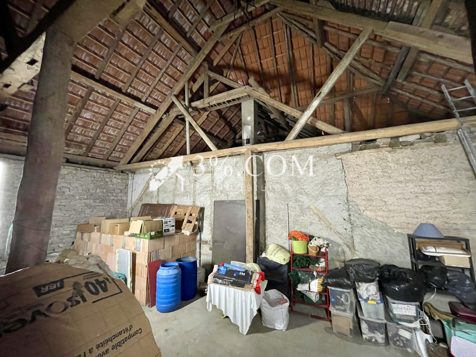 -- Un grand espace (cathédrale) d’environ 100m² aménageable avec accès au comble situé au dessus de l’habitation (~80m² au sol exploitable).