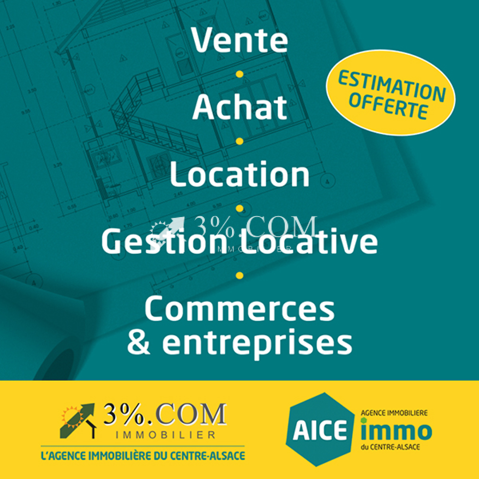 - Contactez : Christophe - Agent Immobilier - au 03.74.47.49.85 du Lundi au Vendredi de 8h 30 à 18h 30 et le Samedi de 8h 30 à 12h 00. Agence Immobilière du Centre-Alsace (AICE-immo) S.A.S, 3%.COM du Centre-Alsace. RCS de Colmar 881 229 173.Agence de Ingersheim 68040 , Siège social : Lièpvre 68660.Réseau national à honoraires réduits.