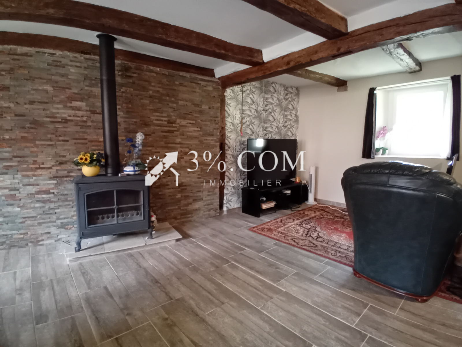 Chauffage :poêle à bois et convecteurs électriques. Fenêtres double vitrage.