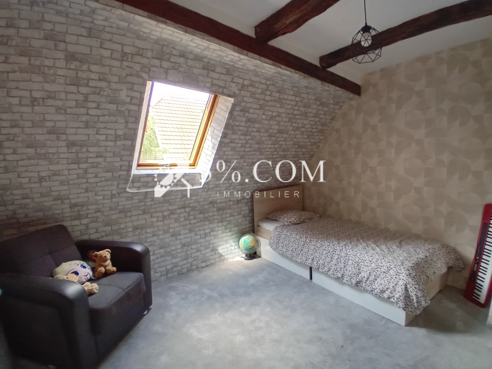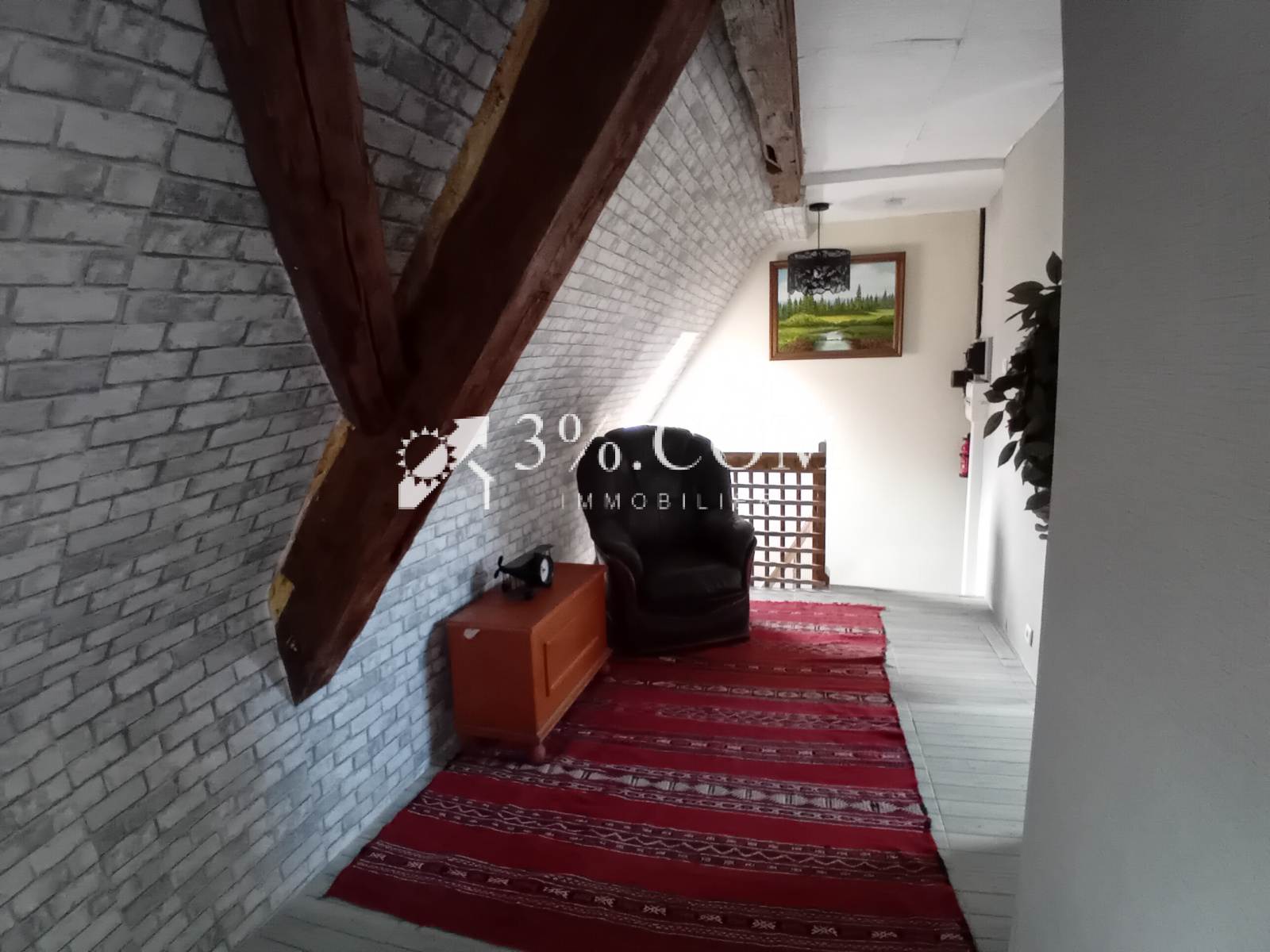 -- A l'étage, un couloir de 10m2 dessert 3 chambres de 10 à 13m2 et une salle d'eau avec wc.