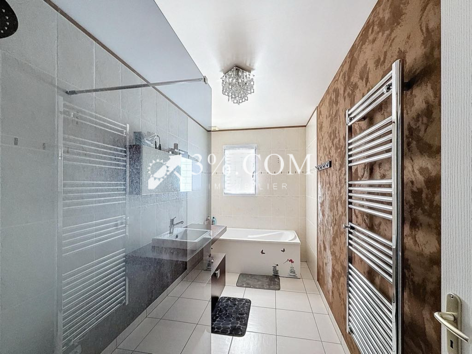 1 belle et grande salle de bains ( douche et baignoire)