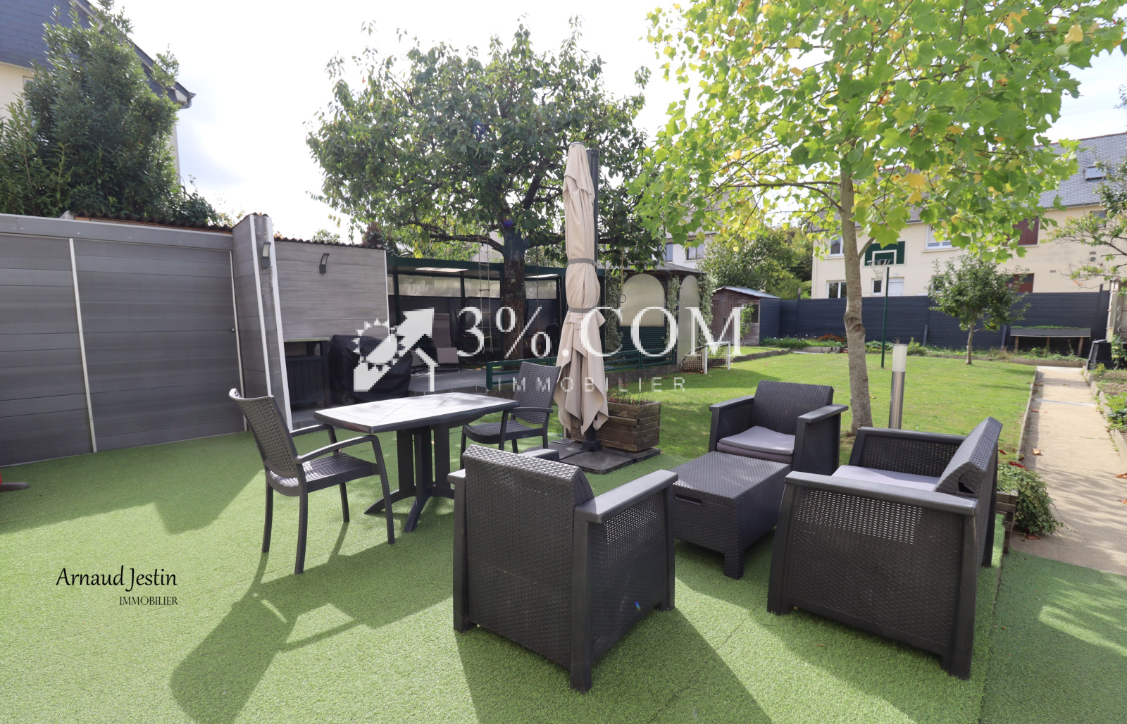 - Le jardin est clos, arboré, piscinable. Il dispose d'une belle terrasse, d'un espace détente et d'un potager pour profiter des beaux jours.