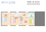 ***ETAGE 2 : Espace prêt à aménager pour une surface au sol (61 m²) et création d’un espace habitable (31 m²)