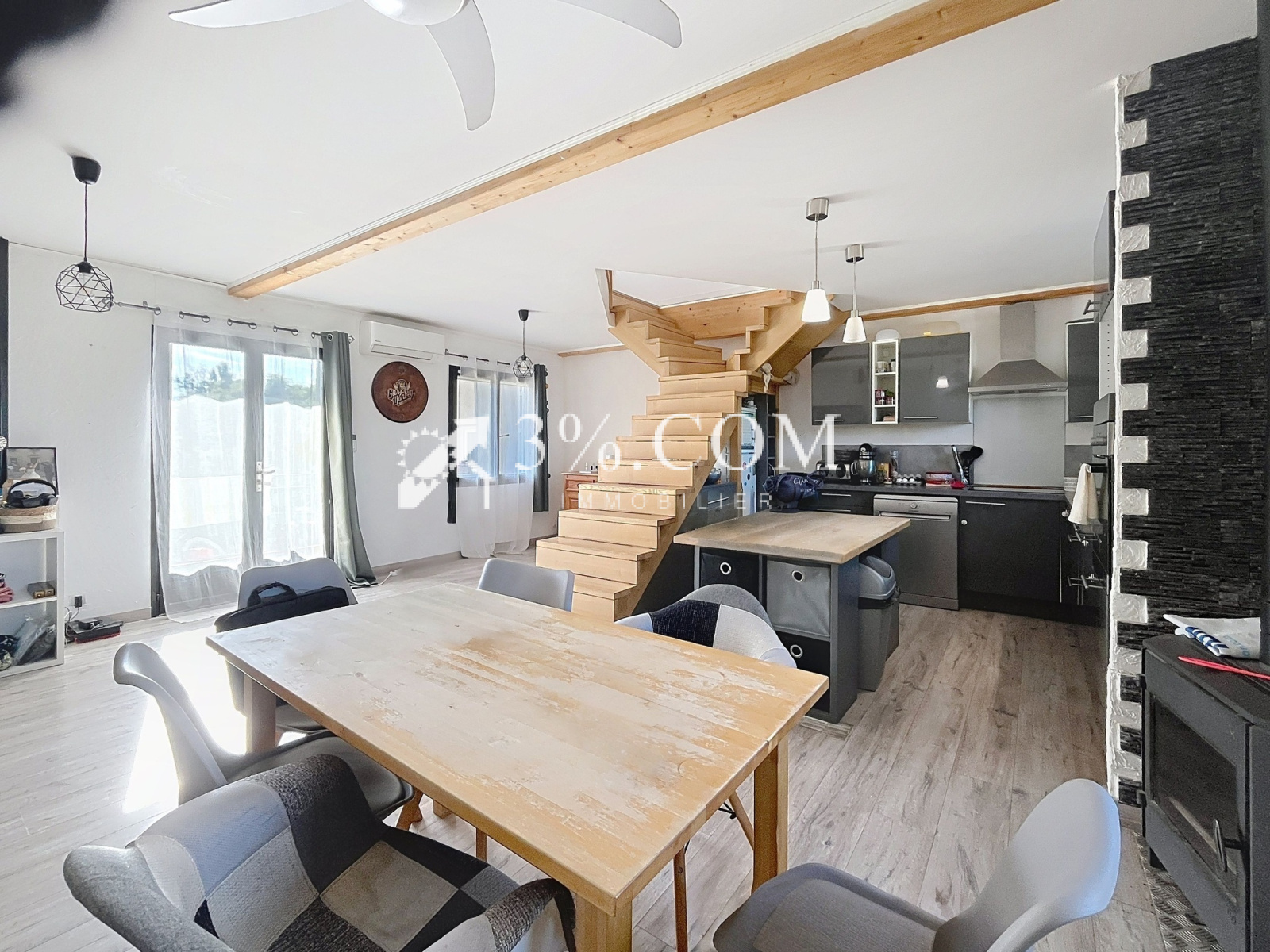 Climatisation réversible , poèle à bois .