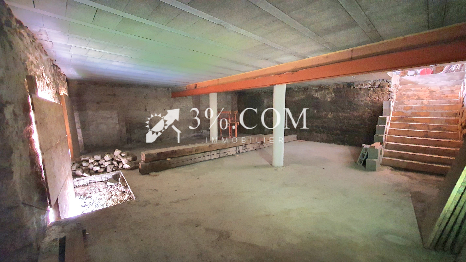 3 plateaux de presque 100 m² chacun, avec belle dalle béton récente, à aménager comme vous le souhaitez.