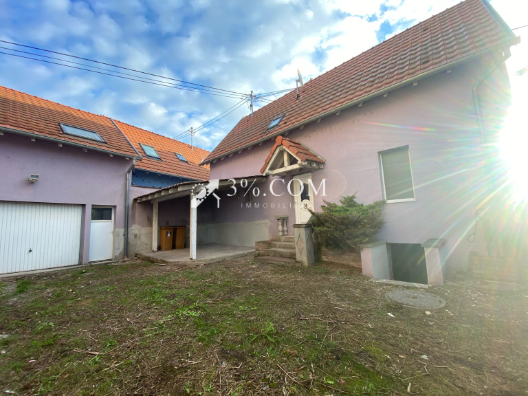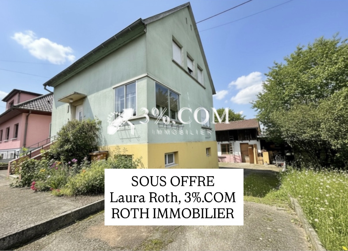 3%.COM - SOUS COMPROMIS EXCLUSIVITE- A HOCHFELDEN, route de Strasbourg , maison avec 3 chambres à rénover partiellement avec cour, garage et dépendance. --- La maison dispose de 3 chambres et d'un salon ouvert sur cuisine. --- Une cour avec coin terrasse couvert, une garage et un studio à aménager complètent ce bien. -- A proximité de toutes commodités, de la gare et des commerces, ce bien vous séduira par sa situation et son potentiel d'aménagement. --- Vous recherchez un bien fonctionnel, la qualité de vie d'une commune dynamique et renommée, alors n'hésitez pas et venez visiter cette maison. Composition: --- au Rez de chaussée: -- 1 espace ouvert salon/cuisine (33m²) -- 1 salle de bain ( baignoire, vasque) -- 1 toilette ---au 1er étage: -- 3 chambres ( 17m2, 11m2 et 12m2 au sol) -- 1 placard ---Extérieur: -- cour avec coin terrasse de 11m2 -- garage de 24m2 + dépendance de 23m2 aménageable en studio --- Autres informations: -- Travaux à prévoir : mise en place d'une cuisine, terminer les travaux de rénovation de la pièce à vivre, revêtement dans chambre et couloir ... -- Chauffage gaz de ville -- Fenêtre double vitrage --Pas d'anomalie gaz, ni plomb, ni amiante --DPE:C --Principales distances: Truchtersheim: 14 min, 14 km. Oberhausbergen: 25 min, 23 km. Schilt. Parc Euro Entrep: 18 min, 26 km. Strasbourg-centre: 23 min, 31 km. Saverne: 17 min, 16 km. Brumath: 12 min, 12 km. --- Vous trouverez d'autres photos sur notre site troispourcent. com -- Contactez Sandrine ROTH 06 58 67 64 84. Du lundi au samedi de 9h00 à 19h00. -- Agence Immobilière ROTH IMMOBILIER Sarl, franchisé 3%.COM, RCS 803 863 638. -- Agence et vitrines à Hochfelden, siège à Gimbrett-Kochersberg. -- Réseau national à honoraires réduits: 3% TTC