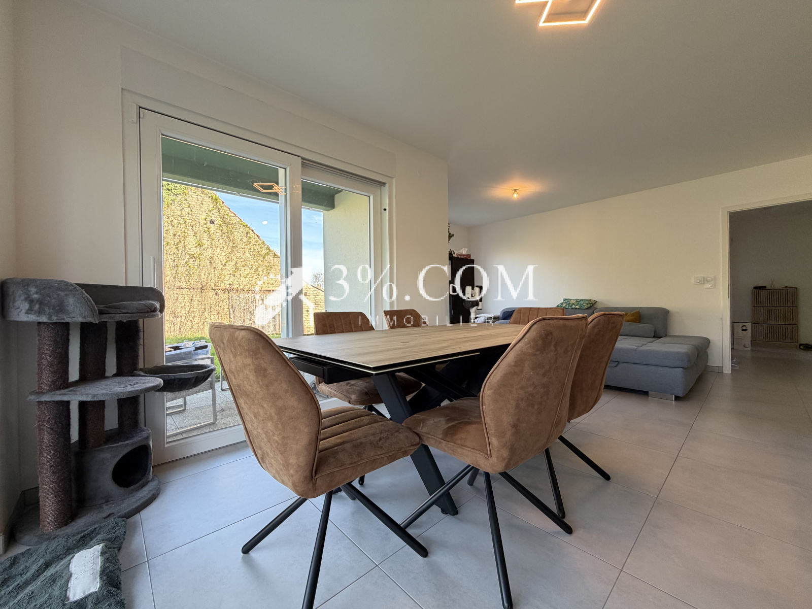 – 1 bel espace salon/séjour lumineux ouvert sur la cuisine (environ 36 m²), avec accès direct à la terrasse et au jardin.