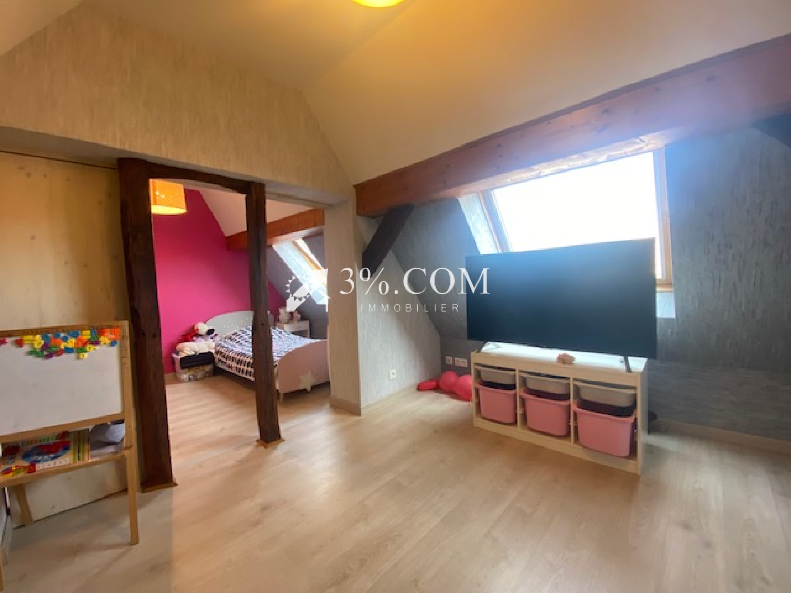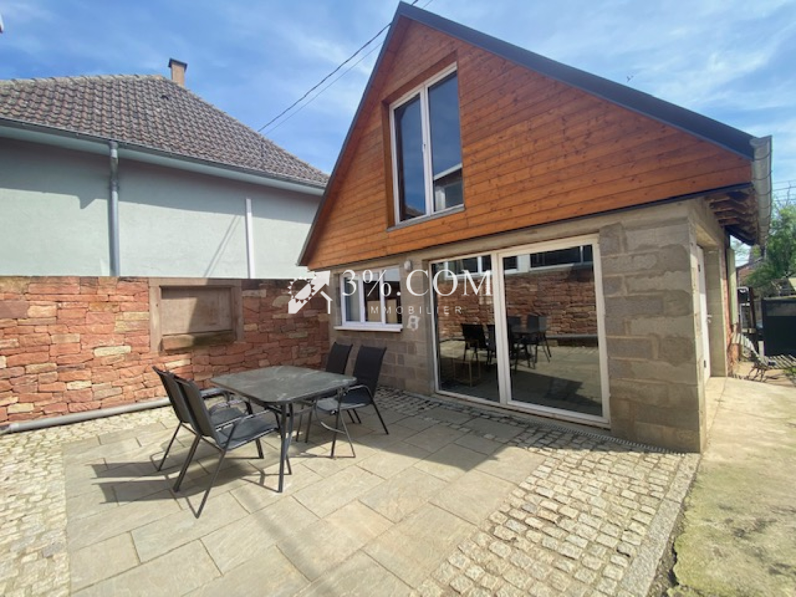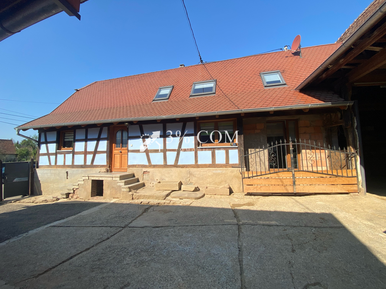 3%.COM EXCLUSIVITE- VENDU ! A coté de Hochfelden, Melsheim, corps de ferme rénové sur une parcelle de 26 ares composé d'une maison d'habitation de 106m² habitables (3 chambres), de dépendances, d'un hangar et d'un grand jardin. --- La maison d'habitation est une maison alsacienne entièrement rénovée -- Des dépendances de plus de 200m² , un hangar ( 106m²) , une cour, une cave et une beau jardin complètent ce bien. --- Vous cherchez un bien rénové avec de mutiples possibilités d'aménagement et de stockage alors venez découvrir ce bien! -- Idéal pour famille, profession libérale, artisan, entrepreneur --- Vous trouverez d'autres photos sur notre site troispourcent. -- Au rez-de chaussée: - Une entrée. - Un salon ouvert sur cuisine - un espace bureau - une chambre - une salle de bain avec toilette -- Au 1er étage: - Un dégagement. - 2 chambres avec rangement -- Informations diverses: -- Dépendances à fort potentiel -- Chauffage électrique+ poele à bois central --Climatisation neuve --Isolation intérieure --Extérieur: - une dépendance aménagée avec coin buanderie, electricité, sanitaire, ( 35m² au sol ) - une grange ( 12mX11.50m): 138m² - un hangar ( 20 x 5.30m) : 106m² - un jardin plat , arboré et cloturé --- Vous trouverez d'autres photos sur notre site troispourcent. com - - Contactez Sandrine ROTH au 06 58 67 64 84. Du lundi au samedi de 9h00 à 19h00. -- Agence Immobilière ROTH IMMOBILIER Sarl, franchisé 3%.COM, RCS 803 863 638. -- Agence et vitrine à Hochfelden, siège à Gimbrett-Kochersberg. -- Réseau national à honoraires réduits: 3% TTC